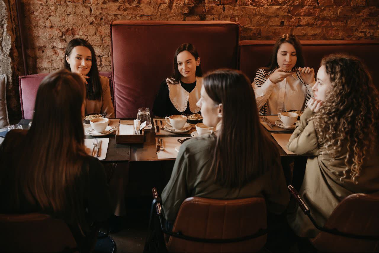 Я сидела одна за большим столом на восемь человек. В кафе зашла компания из шести мужчин — все столики были заняты. Я подняла руку и сказала им, что ухожу и они могут занять мой стол. А они ответили: «Зачем уходить? Садитесь с нами».